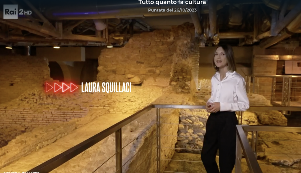 Nella puntata di Giovedì 26 ottobre 2023 del programma di Rai 2 “Tutto quanto fa Cultura”, condotto da Lodo Guenzi, la giornalista di RaiNews 24 Laura Squillaci ha raccontato, insieme a  Lorenzo Dell’Aquila, il Vicus Caprarius come esempio delle straordinarie e spesso inaspettate sorprese riservate, non solo ai turisti, dal sottosuolo di Roma.