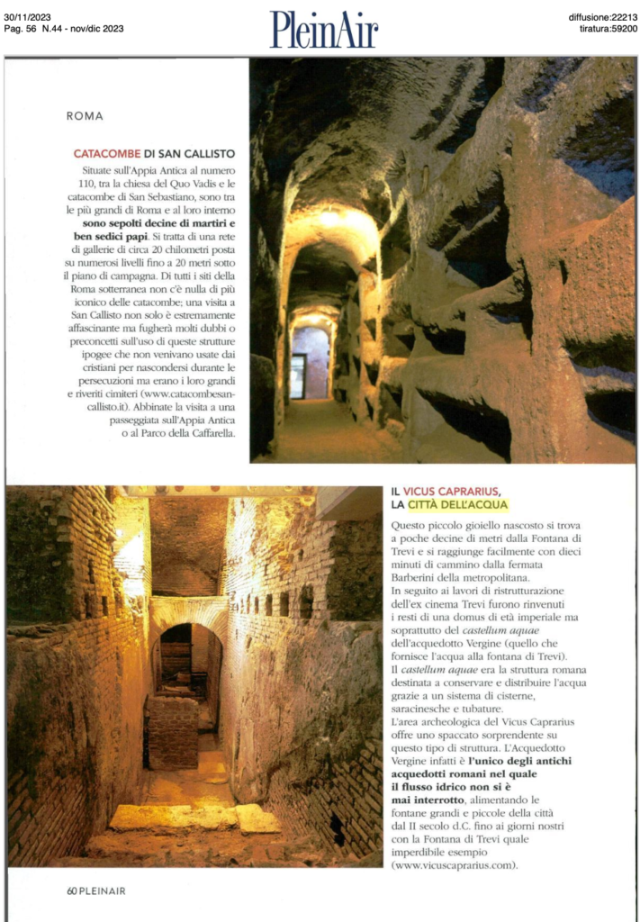 La rivista PleinAir (44, nov/dic 2023), nello speciale Eterna e Inaspettata, ha inserito il Vicus Caprarius tra i luoghi da non perdere per chi vuole scoprire a Roma qualcosa di insolito.