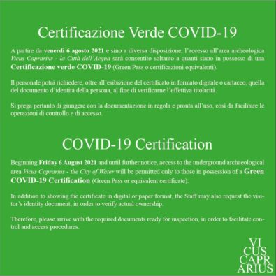 ⚠️ Beginning Friday 6 August 2021 and until further notice, access to the underground archaeological area Vicus Caprarius - the City of Water will be permitted only to those in possession of a Green C [...]
